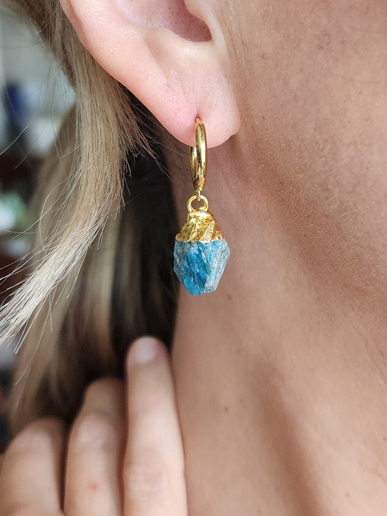 Crafted with a raw gemstone nugget, capped with 14K gold plating for a luxurious finish.