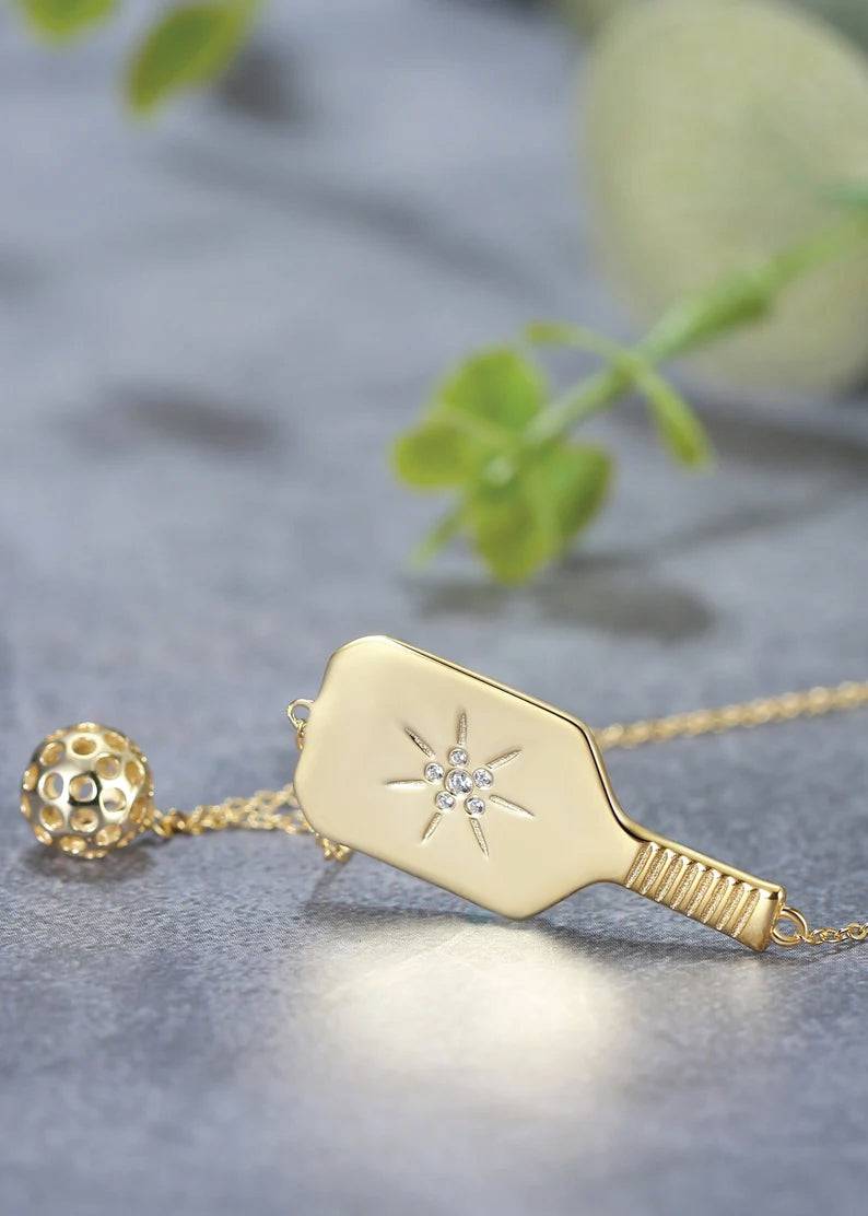 PickleBelle Exclusive Dinker Pickleball Necklace in Gold