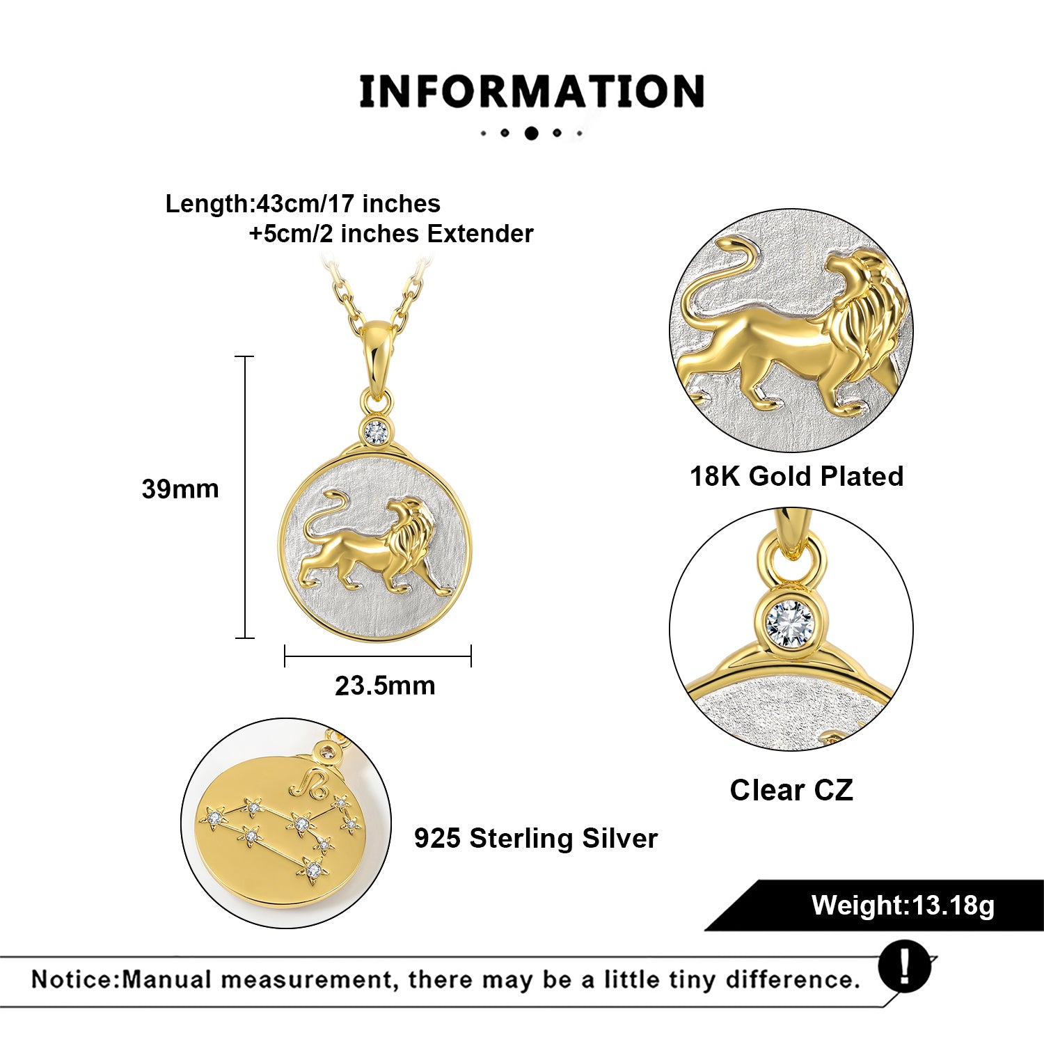 Our Wild LEO features an elegant lion in relief in gold on a sterling silver background. The reverse side shows the constellation set with crystal 'stars' and the astrological symbol as well.