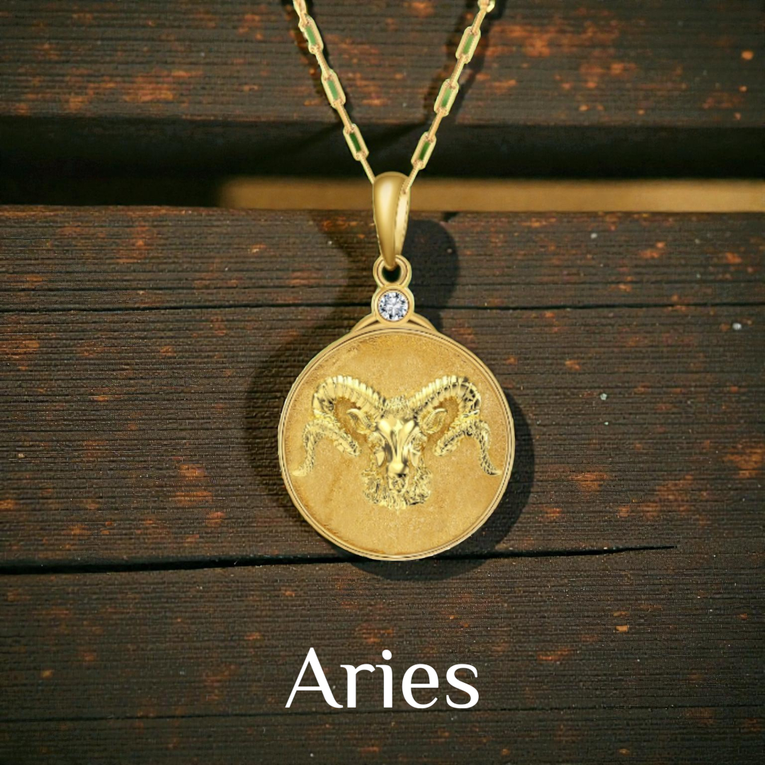 We created unique artisan designs depicting the signs of the Zodiac with a more 'wild life' approach. Each symbol is in a 3D relief on one side as a stunning, detailed pendant, and the reverse side shows the stars set in stones.